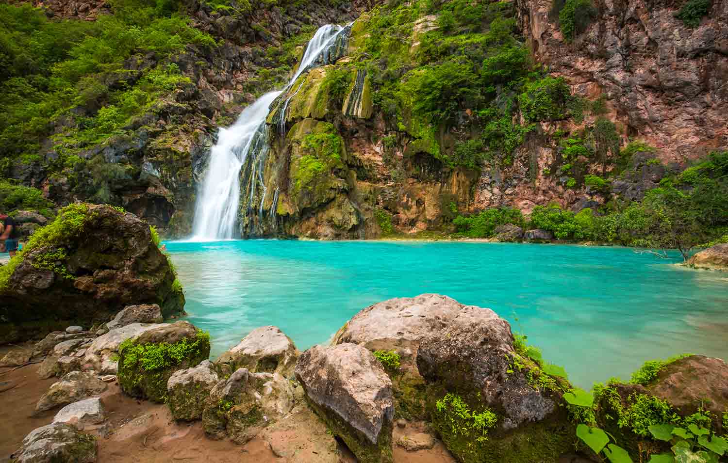 À quelques minutes à pied des ruines de Sumhuram se trouve le paisible Khor Rori, le plus attrayant des nombreux khors (ruisseaux) qui bordent le littoral autour de Salalah. Une paire de promontoires symétriques flanquent l'embouchure du khor, qui est séparé de la mer par un banc de sable bas. Par conséquent, les eaux à l'intérieur du ruisseau (alimenté par Wadi Darbat) sont d'eau douce et regorgent de poissons, qui à leur tour attirent une belle sélection d'oiseaux aquatiques, tandis que les chameaux peuvent généralement être vus brouter la verdure environnante. C'est un endroit merveilleusement paisible - si calme que vous pouvez réellement entendre les éclaboussures des poissons dans l'eau.